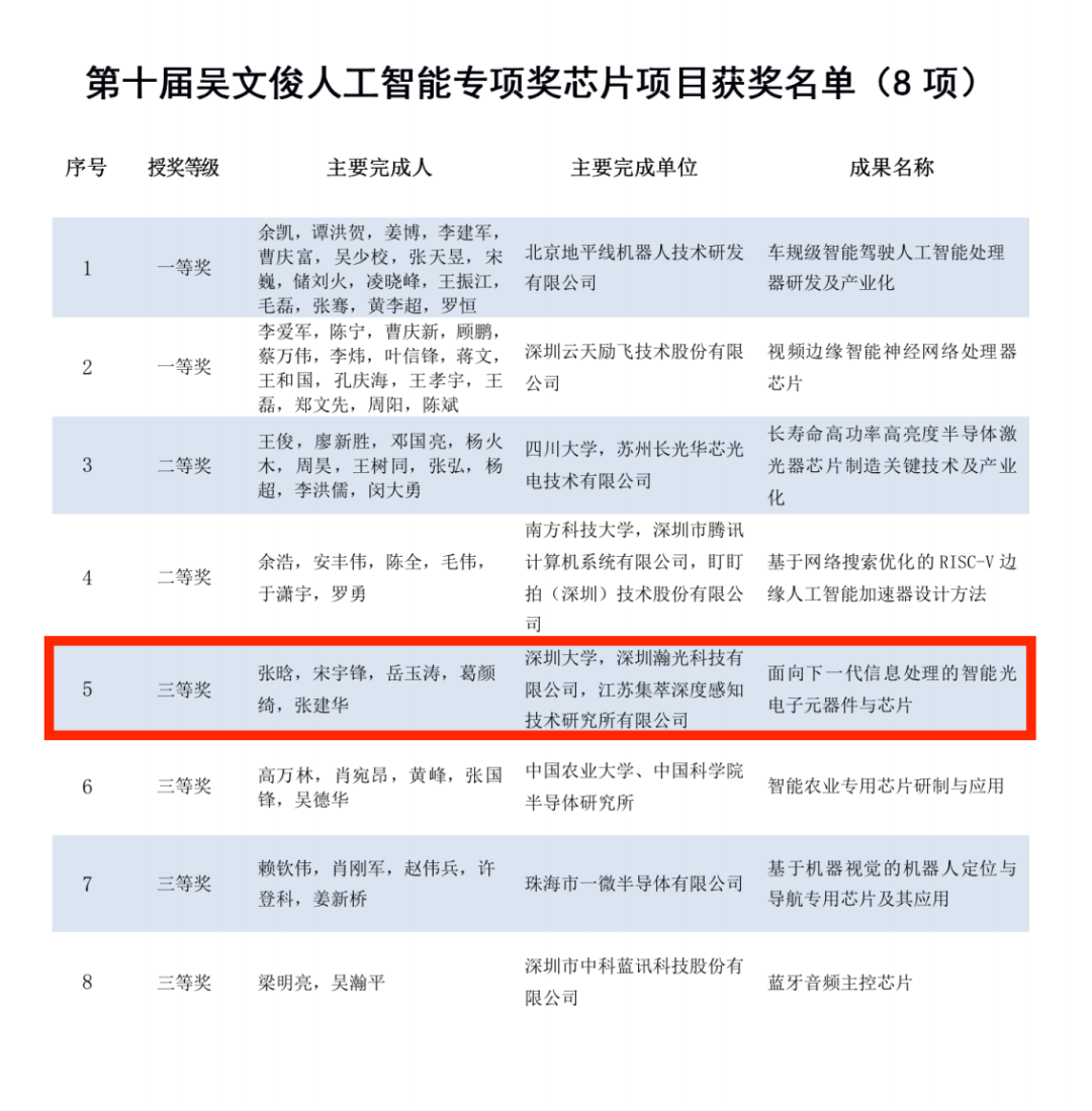 图1第十届吴文俊人工智能专项奖芯片项目获奖名单