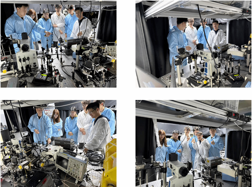 演示结束后,王烨晨手把手指导同学们分组上手实操,从样本放置、参数调试到信号采集、图像解读,耐心解答每一个操作疑问,帮助大家亲身体验无标记、免切片的精准成像过程。同学们积极参与,在亲手操作中观察新鲜组织样本的三维微观结构成像效果,真切感受亚细胞级分辨率、超大光学焦深等技术优势,进一步加深了对项目核心技术与临床应用价值的理解。