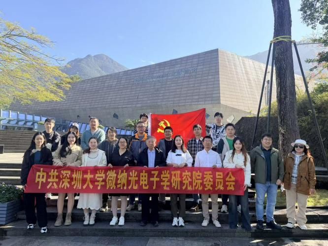 为深入学习贯彻习近平新时代中国特色社会主义思想,加强党员的党性教育,深圳大学微纳光电子学研究院党委于2025年11月28-29日组织教职工党员前往大鹏新区开展“赓续红色血脉 智创未来征程”红色主题研学活动。此次活动通过探访“不忘初心、牢记使命”主题教育馆、袁庚故居、刘黑仔纪念馆及深圳国家地质博物馆四处特色地点,带领党员们重温革命岁月,感悟改革精神,从历史的光辉中汲取砥砺前行的力量,以更坚定的信念和更饱满的热情投身新时代的科技创新和教育事业。