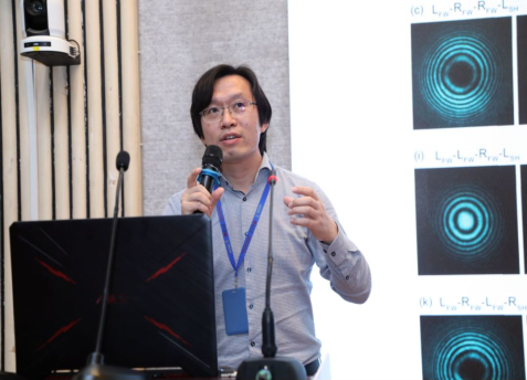 南方科技大学李贵新教授,在“非线性光学晶体中的角动量演化”报告中,从 晶体中的线性与非线性光学几何相位出发,详细探讨了光子角动量态在非线性光学晶体中的具体演化过程。李教授深入解析了非线性光学中的旋转多普勒效应与自旋-轨道耦合效应,并展示了其团队在这一领域的最新研究成果。报告内容丰富,激发了在场学者的浓厚兴趣和热烈讨论。